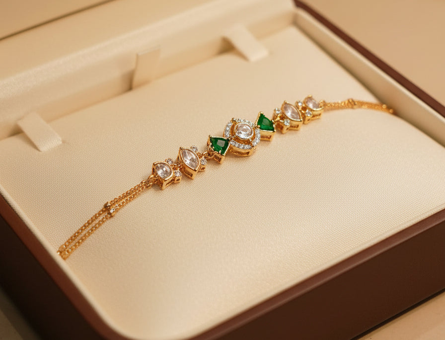 Garnished with Polki Kundans, the symbol of Royals.