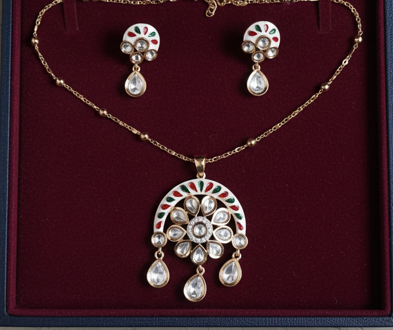 Garnished with Polki Kundans, the symbol of Royals.