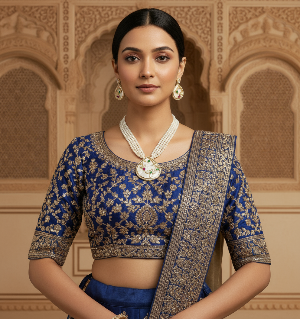 The set is completed by a pair of matching teardrop earrings, echoing the pendant's design perfectly. Each piece is framed by a subtle border of sparkling micro-set stones, adding a touch of sophisticated glamour. Ideal for royal engagements and heritage celebrations, this set is a timeless heirloom designed for the discerning woman