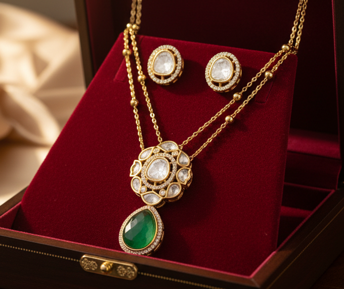 Genuine Zircon stones that we all know as AMERICAN DIAMONDS, gives a brilliance not just glitter.