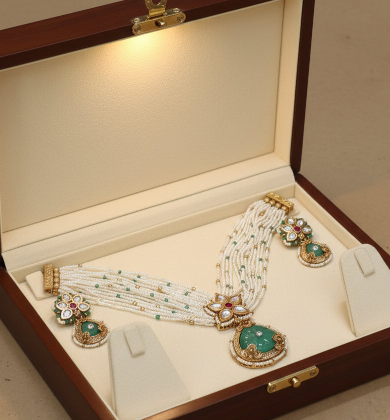 Garnished with Polki Kundans, the symbol of Royals.