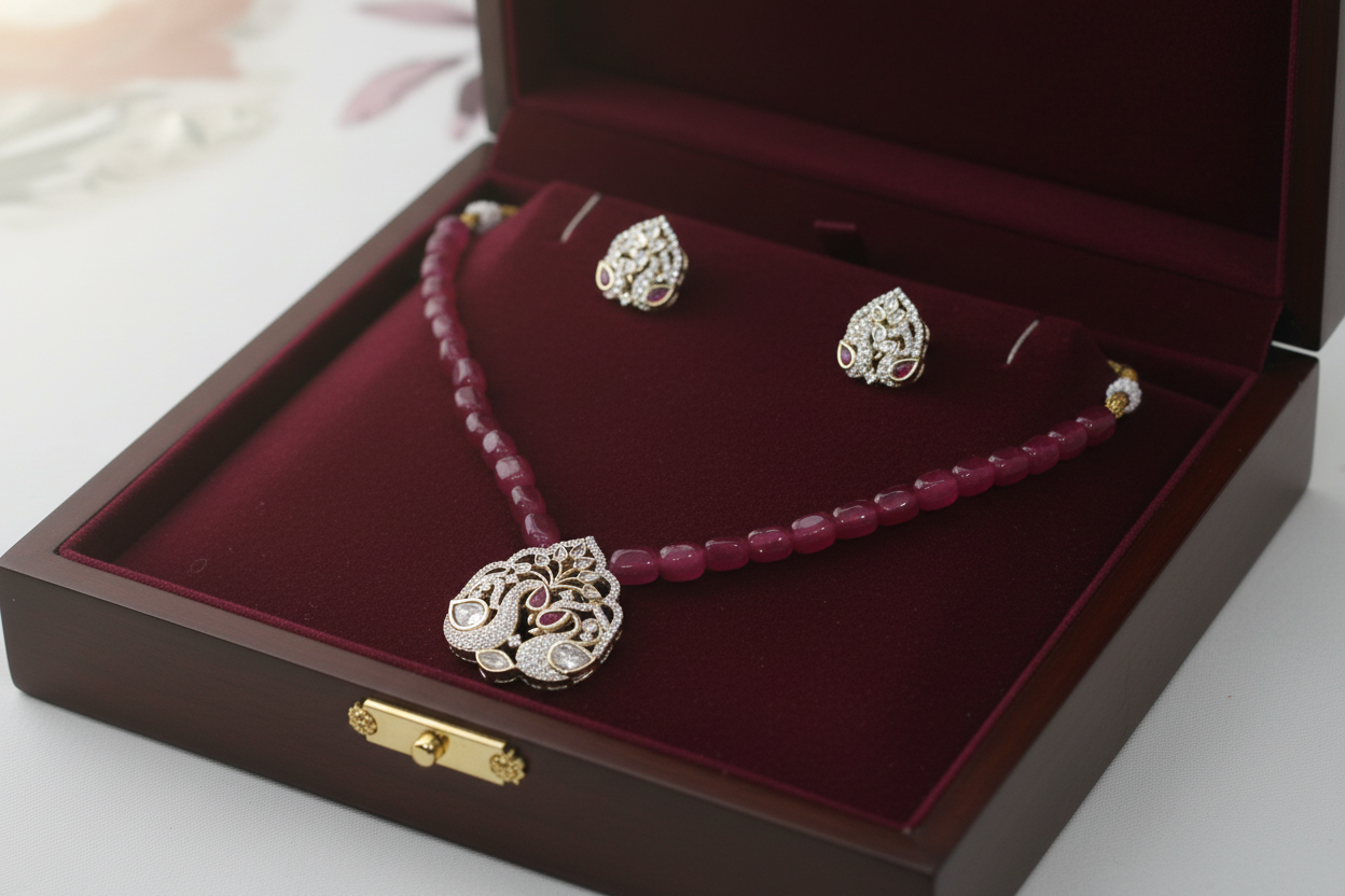 Garnished with Polki Kundans, the symbol of Royals.